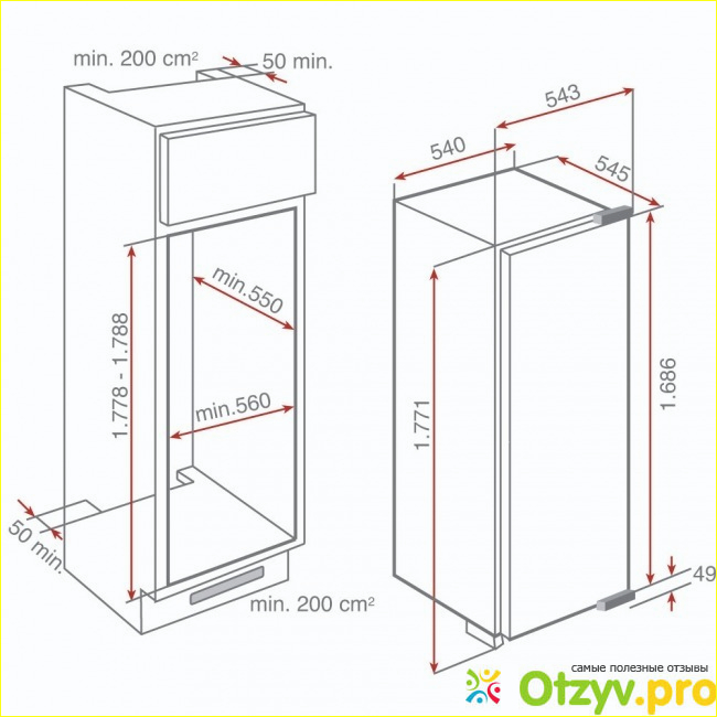 Размеры холодильника следующие: высота его составляет 178 см, ширина 55 см и глубина 55 см. В таких вот пределах.