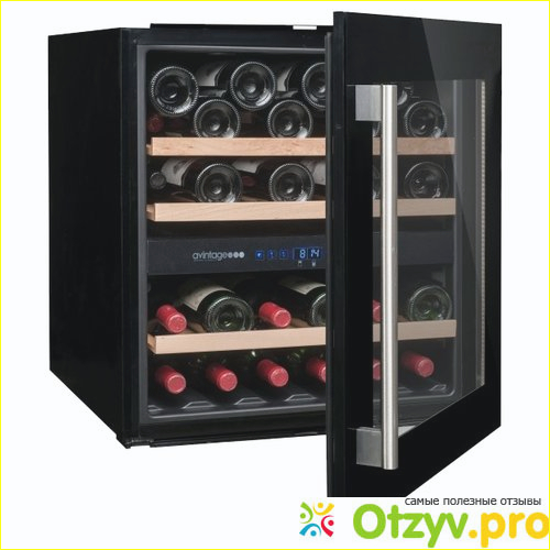 Он черного цвета, дверь с хромированной ручкой стеклопакет, защищающая вино от УФ-лучей, полки деревянные, их три, два температурных отсека, управление электронное, температура регулируется от пяти до восемнадцати градусов, полки выдвижные, очень удобно скользят по направляющим.