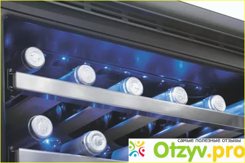 Управление встроенным шкафом электронное, он оснащён цифровым дисплеем, где можно задать нужную температуру от 5 до 22 градусов, и контролировать её по мере необходимости. Так же шкаф оснащён холодной неоновой подсветкой.