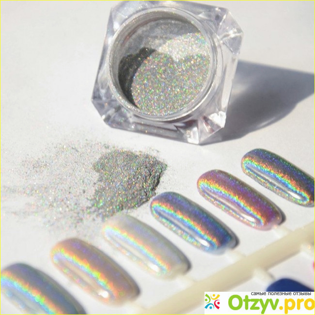Порошочек визуально выглядит как серебристый, только под определенным углом к источнику света можно поймать другие оттенки.