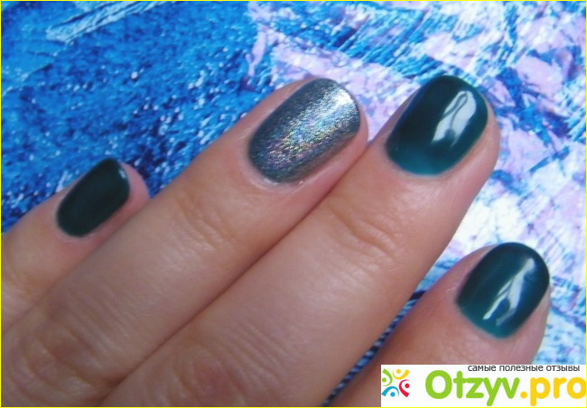 Эффект фотографией практически невозможно передать, к сожалению. Втирка переливается всеми радужными оттенками. Немного пропускает оттенок подложки, т. е. цвет того гель-лака, который нанесли перед втиркой.