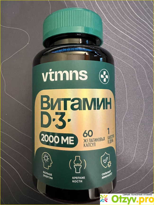 В описании, где покупала было сказано, что этот витамин Д идет вместе с оливковым маслом, это большой плюс, т. к. витамин Д3 жирорастворимый, поэтому так он усваивается лучше. Но есть одно ""но"", на самой этикетке я эту информацию так и не нашла. Этот момент я потом постараюсь уточнить у производителя через обратную связь, но по моим впечатлениям проблем с усвоением нет, а специально я жирную пищу к приему витамина Д не добаляла. Принимала месяц, сейчас делаю двухнедельный перерыв и свова начну на месяц. По иммунитету: косвено, конечно, но за последний месяц не болела. По энергии: пока пила была бодрее, сейчас в перерыве ощущается спад, думаю уже, что не надо было прерывать, но зато эффект проверила. В общем, мое мнение — эффект есть, усваивается хорошо.