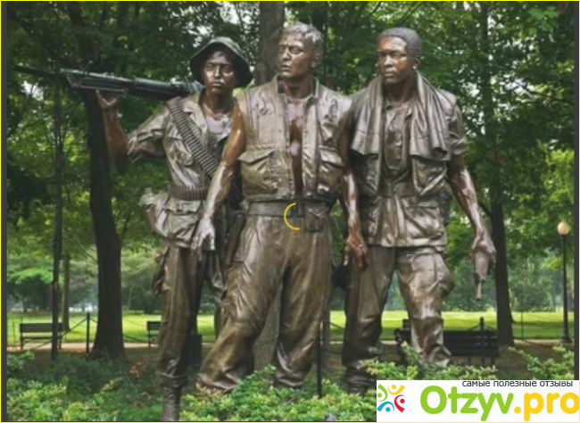Рядом со стеной вы увидите другие статуи: три солдата и мемориал вьетнамских женщин. Более традиционные по внешнему виду, они были построены отчасти для того, чтобы успокоить тех, кто чувствовал, что стена была слишком абстрактной.
