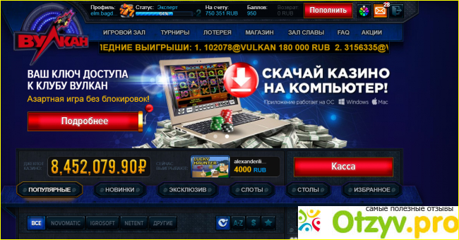 Это безусловно касается и интернете, где все просто запрограммировано на ваш проигрыш. С Вулканом я познакомился два года назад и честно признаться был яр, что влез в это дело. Мне не так жалко денег, которые я там оставил, мне просто стыдно за самого себя, что я повелся как малолетний ребенок.