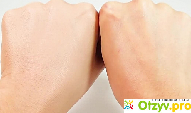 На фото ниже слева рука покрыта кремом, справа нет