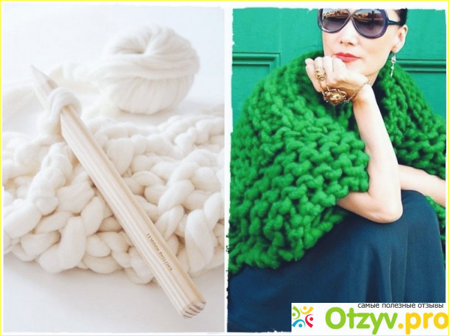 1. Вот если мы посмотрим на образец, здесь взяты, толстые нитки и не большие спицы.