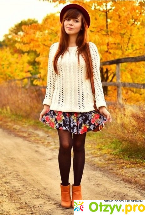 Прекрасно сочетается белый ажурный свитер с легким цветастым летним платьем. Чтобы закончить образ, наденьте плотные колготы, обуйте ботильоны. Можно дополнить концепт маленькой аккуратной шляпкой с полями.