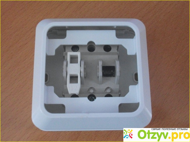 Корпус выключателя выполнен из прочного пластика ASB, который надежно защищает от поражения током. Он не желтеет и не выгорает со временем, а также легко очищается от пыли влажной тряпочкой. Однако, стоит обратить внимание, что выключатель предназначен только для открытой электропроводки и не следует допускать попадания воды внутрь.