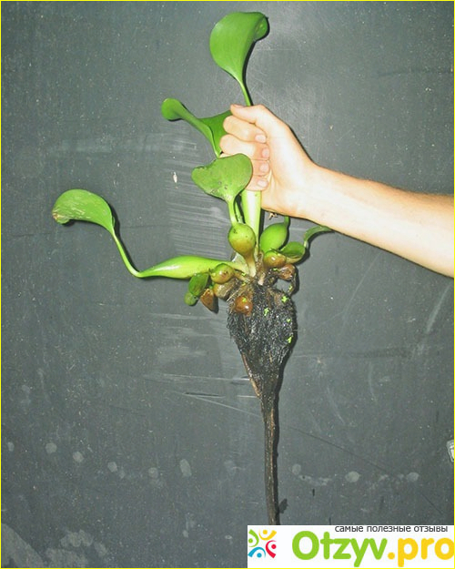 Эйхорния работает, как очиститель воды - если поместить растение в грязную, мыльную с осадком воду, через два дня водичка будет прозрачной и чистенькой.