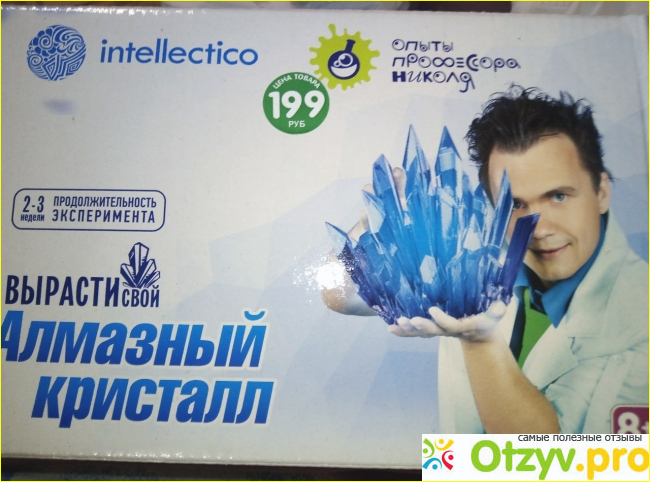 Подарили родственники сыну набор опыты профессора Николя от компании intellectino. Это оказался голубой кристалл который нужно было вырастить самим.
