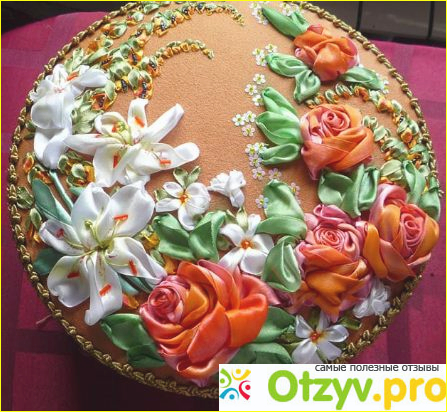Также необходимо помнить о том, что нельзя слишком сильно затягивать ленты, иначе вышивка потеряет свой объем и не будет такой красивой и фактурной, а ведь именно эти свойства и ценятся больше всего в этом виде рукоделия.