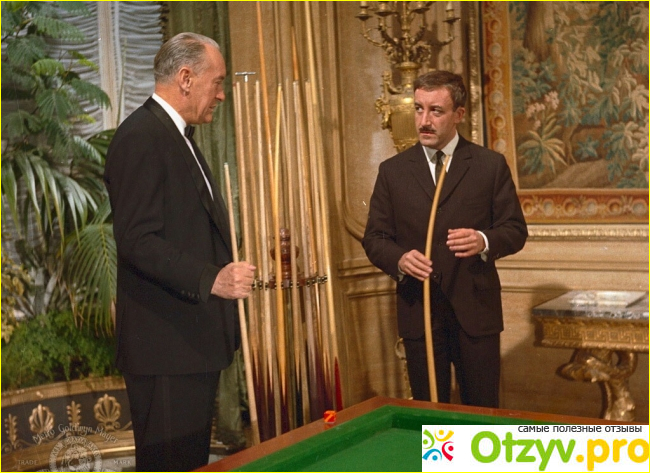 Продолжая разговоры о плюсах, то тут без сомнения стоит отметить отличную игру Питера Селлерса, который в очередной раз и не в последний вернулся к роли забавного Жака Клузо, не видевшего порой того, что происходит у него под носом, а так же остальных актёров, правдоподобно отыгравшие своих личностей.