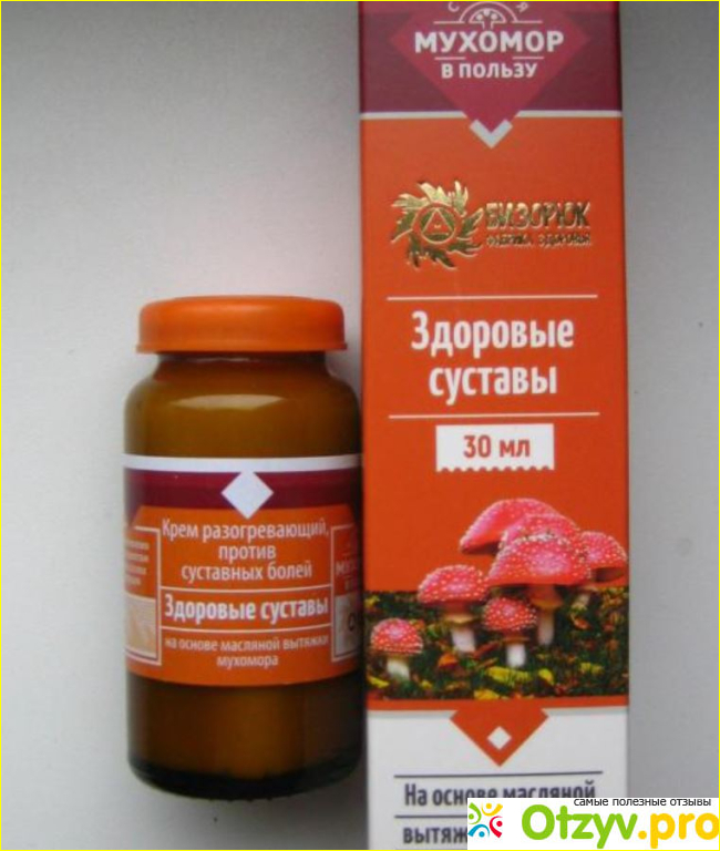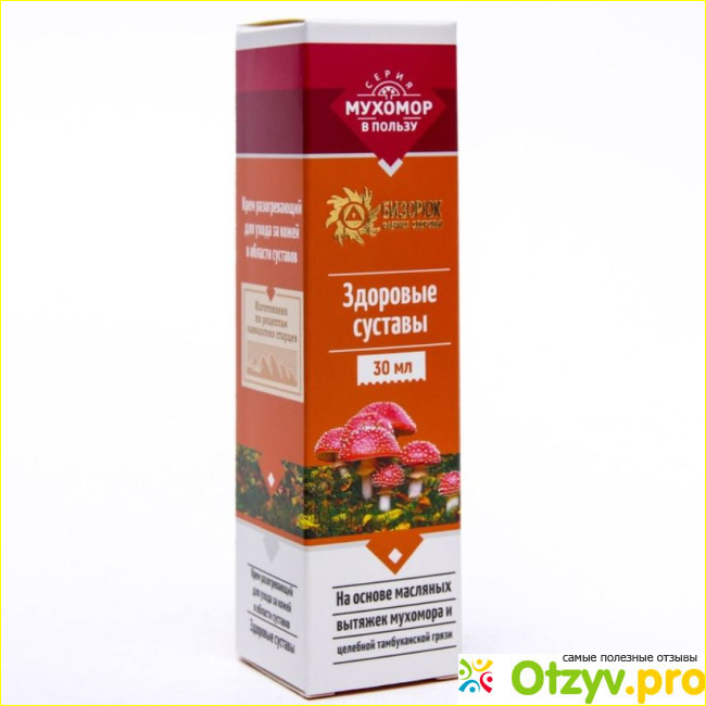 Экстракт мухомора масляный в своем составе содержит отличную концентрацию таких важных компонентов, как алкалоиды. Среди них мускаридин, кислота иботенова, мускарин, мусцимол. Именно эти компоненты помогают снимать отеки и очень хорошо снимают воспаления, а также помогают быстро и эффективно снимать болезненные ощущения. При этом происходит стимулирования процессов обмена в хрящевых тканях, поэтому и процесс выздоровления и восстановление при повреждениях происходит гораздо быстрее. Я сама заметила, что мое состояние значительно улучшилось и это намного быстрее, по сравнению с предыдущим средством, которым я пользовалась.