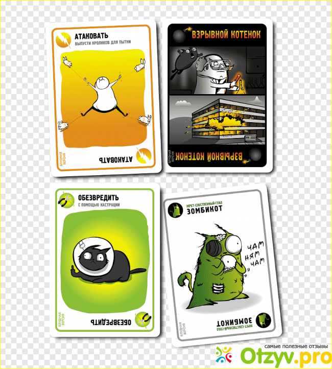 Данная настолка очень проста в плане игры и вникнуть в нее не составит большого труда. По сути она ничем не отличается от стандартной игры, кроме конечно внешнего вида игровых карт. Художники, которые рисовали эти карты, реально оторвались во время создания этой вариации игры. Не отстают от картинок и надписи с шутками. Каждый игрок, первые пол часа больше рассматривает картинки и тихо смеется, чем вдумчиво играет. Рекомендую читать текст карт в слух, чтобы весело было не только вам, но и всем за столом.