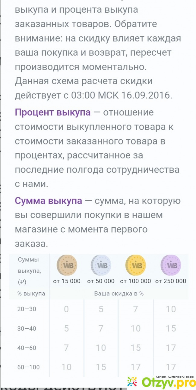 Также на сайте есть система скидок, которая формируется из общей суммы покупок и процента выкупа товаров.