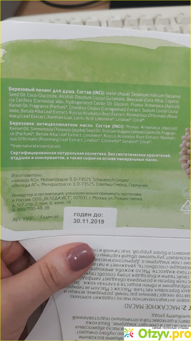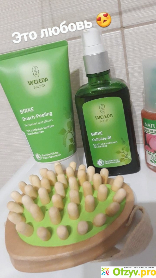 Качество очень хорошее, производство Германии и отзывы отличные. К тому же цена очень порадовала, 1800 за набор, состоящий из антицеллюлитного берёзового масла, березового пилинга, отличной деревянной щётки и косметички.