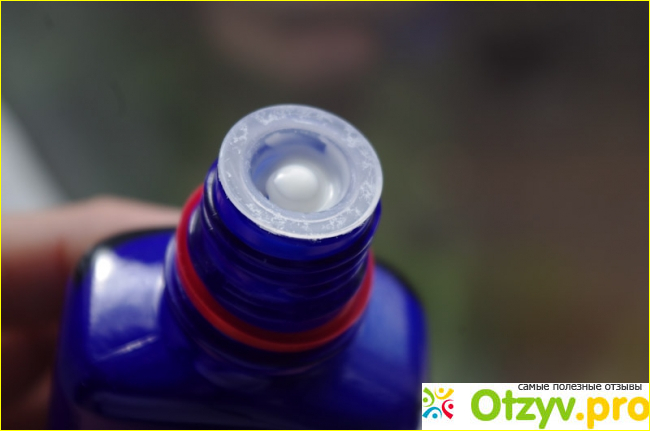 Сам флакончик из синего не прозрачного стекла, очень компактный и удобный: боковые грани бутылочки для удобства держания в руке имеют выемками под пальцы с рифлением. Благодаря этому из мокрых рук флакон не выскользнет .