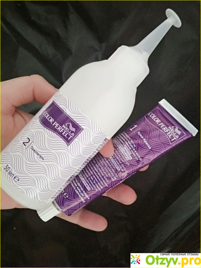 Я решила воспользоваться стойкой крем-краской для волос 5/0 Каштан (Wella Color Perfect), она хорошо ложится и быстро схватывает цвет.