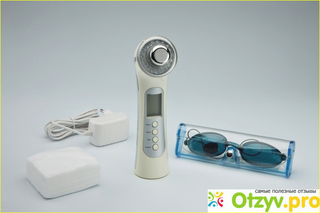 Данный прибор я нашла на одном из сайтов по цене 5890 руб. На том же сайте были указаны следующие характеристики устройства: 1. Питание-сеть, 2. Размеры упаковки25.0х23.0.7.0 см, 3. Размеры изделия 18.5х5.0х5.0 см, 4. Вес изделия 165 гр, 5. Страна производитель: Китай (немного смутило меня, но не испугало, так как Китай уже давным-давно может посоревноваться с проверенными мировыми брендами). Плюс ко всему на данный прибор давалась гарантия 12 месяцев. Получила я свою посылочку через несколько дней и поспешила сразу испытать. В комплект входило: само устройство, специальные защитные очки, зарядка инструкция и салфетки.