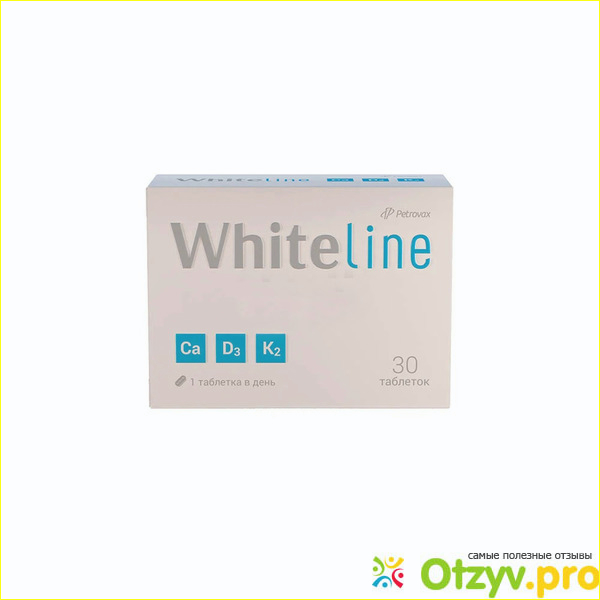 Вайтлайн – это натуральное средство с кальцием и витаминами в составе. Тут витамин К2, удивительный тем, что только он позволяет правильно усвоится и распределиться кальцию. Благодаря К2 кальций направляется только туда, где он реально нужен, в кости, зубы и так далее, а не просто по всему телу разбегается.