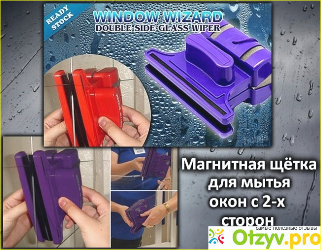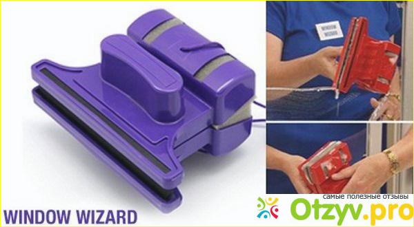 С магнитной щеткой Window wizard вам уже не нужно мучиться со шваброй, тряпка больше не будет слетать, не нужно бояться, что можно упасть во время мытья окон, не нужно потом натирать окна, чтобы не было разводов и пятен. Window wizard идеально моет окна и вы даже начнете наслаждаться этим процессом и он уже не будет таким утомительным и долгим. Главное, во время того, как вы используете щеточки, делать так, чтобы они двигались одновременно в одном направлении, и тогда не будет разводов и окно полностью сможете вымыть, даже в уголках. Если снаружи окно слишком грязное, особенно после дождей, когда садится еще и пыль, то сначала лучше смыть пыль и размочить грязь, и тогда губка отлично отмоет окна. И при этом все можно делать одной этой губкой, без применения дополнительных тряпок.