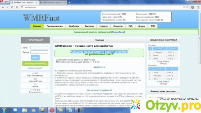 на данном сайте WMR Fast сайт по заработку предлагается много разных вариантов работы, всегда будет чем заняться. Кто не желает просто так сидеть в интернете, может в этот момент времени заработать.