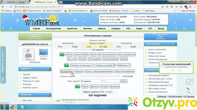 Преимущество сайта тоже имеются и я считаю важно об этом сказать. Во первых все предельно понятно, не нужно искать, мучатся с кнопками, все просто. Отдельно есть раздел для исполнителя, где можно увидеть статистику и сколько выполнено заданий, на какую сумму.