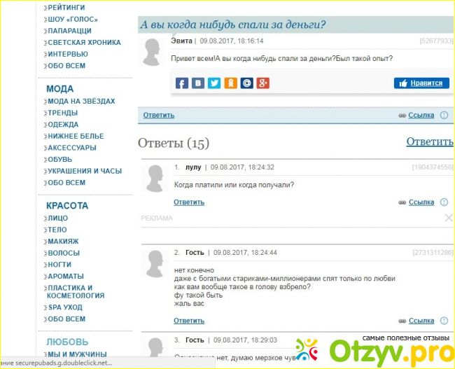 Но самый сок — это комментарии на форуме! Уже многие форумчанки догадались, что большую часть тем придумывает администрация, чтобы привлечь читателей и заставить их активно писать комментарии. Ну какую женщину не заденет тема «Я ненавижу своего ребенка, что делать?» или «У меня два любовника: одного люблю, второй богаты. Кого выбрать?». Темы чаще всего являются «разводками», но почитать ответы людей бывает интересно. Люблю этот сайт, однозначно)).