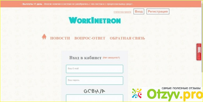 Workinetron, отличный бизнес, не выходя их дома... Так пишут на самом сайте, привлекая легкой добычей "зеленых" за несколько минут.