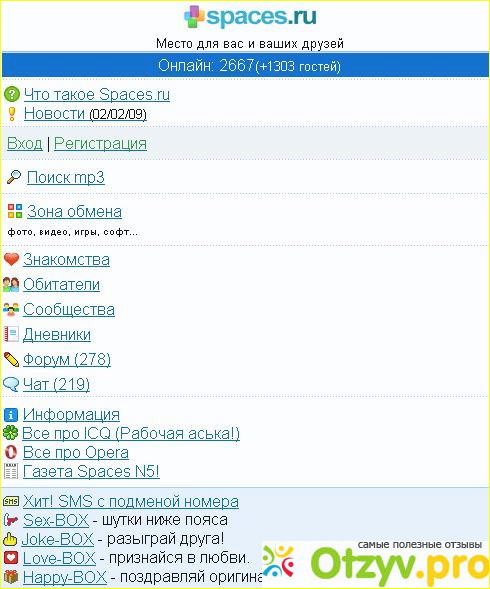 Сервис для мобильных телефонов spaces.ru. Я не буду рекомендовать. Так как в нем много рекламы, извращенцев, порнографии и неадекватных людей, которые постоянно хотят познакомится. Ну а вот для скачивания фильмов или музыки очень даже рекомендую. А для общения конечно нет. Спасибо, большое за прочтение моего отзыва. Хорошего вам настроения. И всем пока, пока!!!