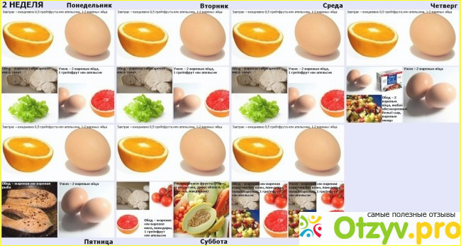 Меню довольно скудное по количеству калорий. В промежутках действительно хочется есть. Если вы плохо переносите вареные яйца, от такой диеты лучше отказаться. потому что яйца могут давать неприятные ощущения в желудке. Между приемами пищи я спасалась от голода водой, салатными листьями, свежими огурцами.