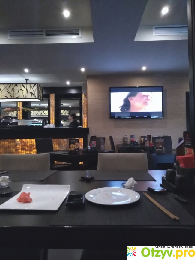 Сразу скажу, что и меню и атмосфера ресторана очень типичные: стандартные псевдояпонские рисунки на стенах, типичная фоновая музыка, иной раз хорошая, иной раз не очень и довольно навязчивая.