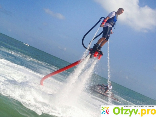 Очень много предлагается морских развлечений, я не рискнула, а супруг попробовал новое развлечение "Флайборд" - это мощный поток воды, который подается от гидроцикла по шлангу к водометным ботинкам, закрепленным на доске. Чем сильнее напор воды, тем ярче ощущения, муж взлетал на высоту до семи метров, кружился, кувыркался, нырял.