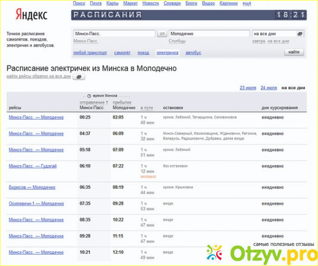 Яндекс расписание электричек, где при необходимости в любое время дня и ночи можно посмотеть расписание пригородных электричек.