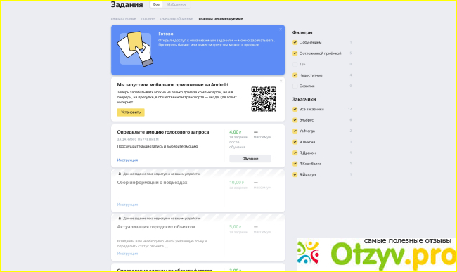 Есть три вида заданий: с обучением, с тренировкой и не оплачиваемые. Все они несложные и связаны с сервисами Яндекса. Чтобы меньше ошибаться стоит открыть инструкцию в отдельном окне браузера, чтобы можно было вовремя подсмотреть.