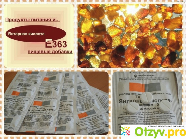 Конечно, еще не все знают, что это за средство. Янтарную кислоту добывают из самого янтаря, она представляет собой мелкие белые кристаллики. Как правило, кислота продается в виде таблеток, которые очень легко растворяются в воде и потом получается достаточно приятный по вкусу напиток, который имеет достаточно приятный аромат и кисленький вкус. Этот напиток необходимо употреблять во внутрь и внешне, и он способен оказывать на организм следующее действие: