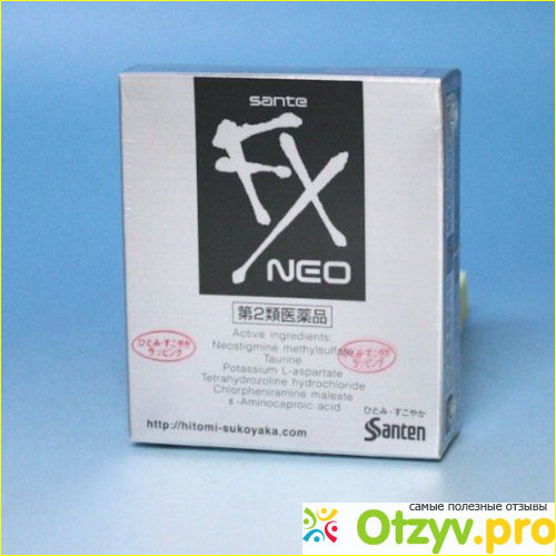 Капли Sante FX Neo включают в себя такие компоненты как таурин, улучшающий метаболизм, вещества, уменьшающие воспаление, раздражение глаз, а также вещество, улучшающее фокусировку глаз. Действительно, после закапывания предметы вокруг становятся более четкими и зрение улучшается.