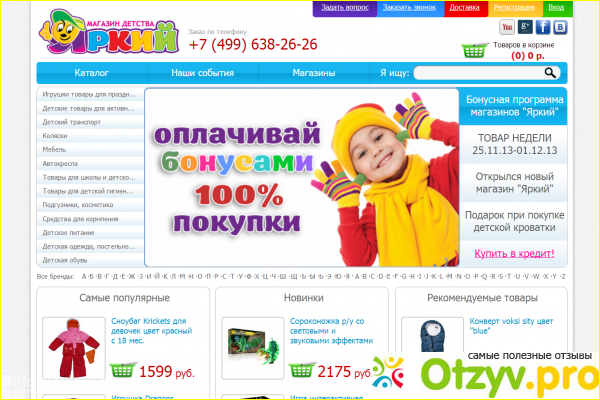 Больших размеров гипермаркет, в Москве целая сеть подобных магазинов, но мы ходили в тот, который ближе всего к нам расположился. И надо еще отметить шикарную работу продавцов-консультантов, которые помогли нам с выбором товаров. Особо стоит отметить ветку детского питания, выбор просто шикарен, набрали тогда разнообразные кашки для ребенка, пюрешек и прочее. Качество просто отменное, что самому захотелось тогда попробовать. На одном опыте посещения детского магазина Яркий мы решили заказывать в интернете вещи, чтобы не тратить кучу времени. Собственно сейчас я вам краткий анализ веб-ресурса дам и в конце отзыва подведем общие итоги нашей теме.