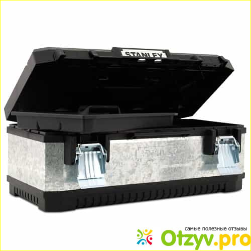 Ящик Stanley - универсальный и компактный, он идеально подходит для тяжелых условий работы и обладает такими защитными функциями, как: оцинкованная поверхность, обеспечивающая защиту от ржавчины, сверхпрочные металлические защелки, сотовая конструкция крышки для дополнительной прочности и жесткости. В ящике для инструментов достаточно места для часто используемых инструментов и принадлежностей. V-образная канавка в крышке для резки древесины и трубопроводов - очень эффективная особенность.