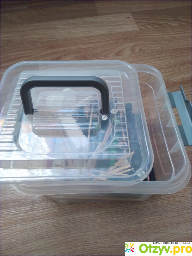 Только он был с крышкой, на которой есть удобная ручка и двумя клипсами защелками, которые плотно закрывают этот ящик.
