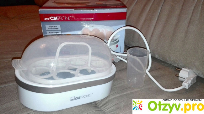 Для примера взяла известную торговую марку Clatronic EK 3497, я расскажу обо всех его технических характеристиках, плюсах и минусах, преимуществах над аналогичными электронными яйцеварками от других производителей.