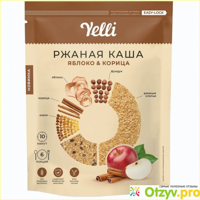 Никаких ГМО, искусственных добавок и ароматизаторов, только натуральные компоненты. Вес упаковки 180 гр. она оснащена удобным замком, который без проблем позволяет хранить кашу после вскрытия. Хватает такой упаковки на 6 порций. Варится эта каша абсолютно не долго , 5-7 минут и можно завтракать.