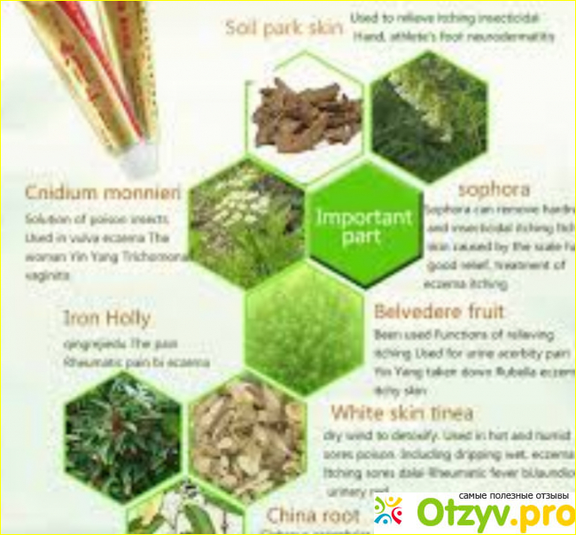 Китайская медицина широко распространилась за последнее время, так как клинические исследования показывают лучшие результаты особенно в проблеме кожных заболеваниях. Крем эффективно борется с бактериями и микробами, благодаря чему избавляет кожу от зуда и покраснения. Ингредиенты, которые входят в состав крема :