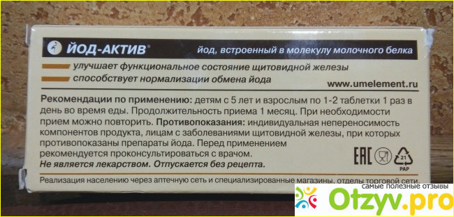 Производитель указывает, что данная биологически активная добавка очень быстро и хорошо всасывается в организме, при йодном дефиците. В случае. когда такой нехватки нет, организме хватает йода, то он не накапливается и не вредит, просто излишки выводятся не затрагивая при этом щитовидную железу и ее функции.