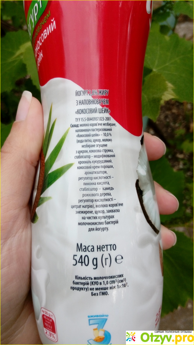 Жирность йогурта хорошая, целых 2,8%.
