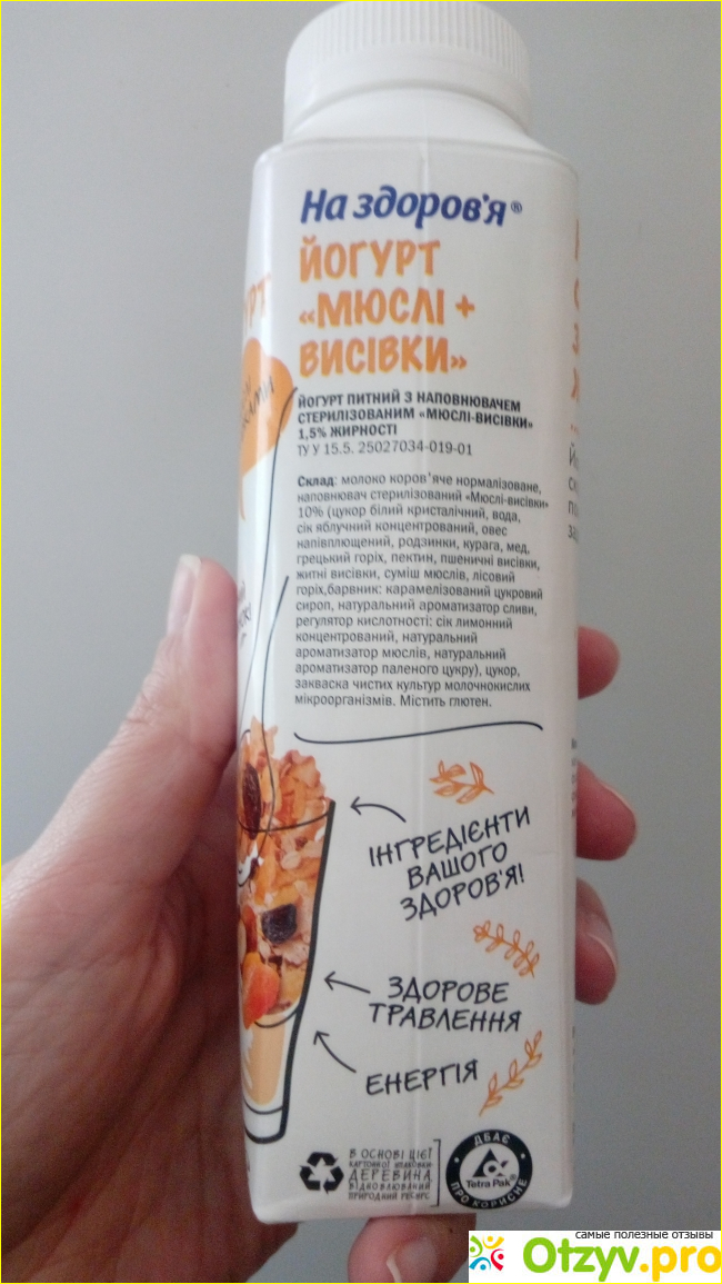 На этот раз решила попробовать йогурт "Мюсли с отрубями" от торговой марки "На здоровье".
