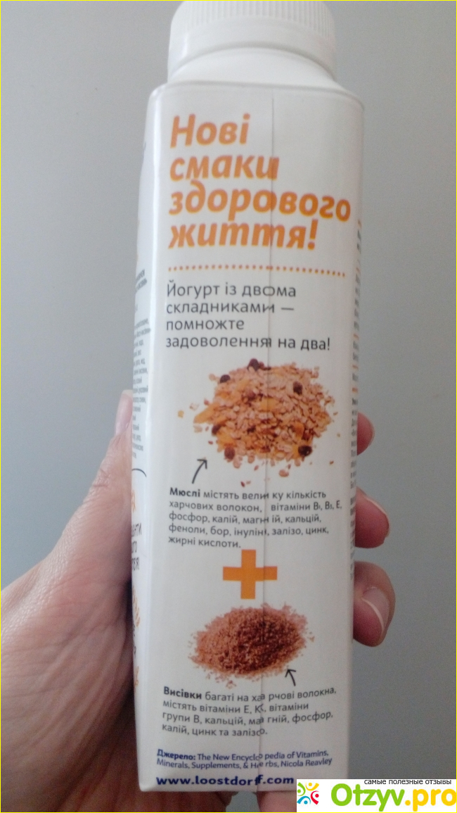 Йогурт содержит полезные и богатые на клетчатку злаки, такие как пшеничные отруби, ячневые и ржаные.