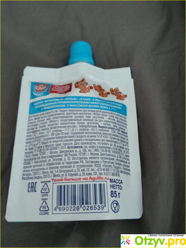 Дочке "Агуша" Непроливайка "Я сам!" понравилась с первого раза. Она буквально за минуту съела все, хотя не могу сказать, что была очень голодная. Нас порадовало, что ей понравился новый продукт и лишь через некоторое время, пару недель, мы решили на упаковке прочесть не только состав, но и возрастное ограничение. Как оказалось данный напиток рассчитан для питания детей старше 3-х лет. Да, я сама виновата что не прочла сразу. Честно говоря я была уверена, что йогурт с надписью "Я сам!" да еще и в такой упаковке рассчитан на детей помладше. Просто малое число детей старше трех испытывает проблемы с правильным употреблением паучей.