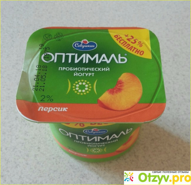 Всем, привет-привет, дорогие читатели! Данный отзыв будет интересен тем, кто любит молочные продукты, он будет на классический и полезный продукт – йогурт, выпускаемый под торговой маркой «Оптималь», обогащенный бифидобактериями, массовой долей жира два процента с фруктовым наполнителем «Персик». Изготовлен он в Республике Беларусь. Стоит такой продукт около пятидесяти белорусских копеек, объём баночки составляет сто пятьдесят грамм.
