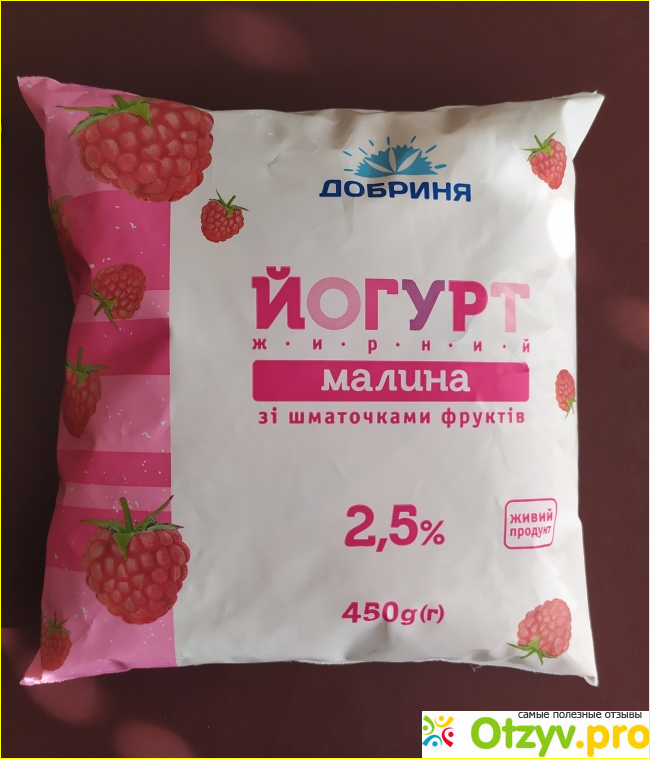 Йогурт из натурального коровьего молока, пальмового масла в нет нет. Малиновый наполнитель содержит ароматизатор, но и кусочки малины тоже есть.